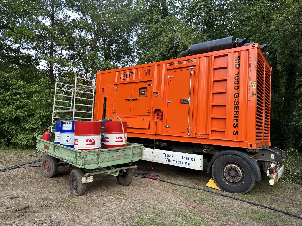 Kein Problem, durch unsere starken Partner rollte keine zehn Stunden später das von uns organisierte 1000KW Aggregat auf den Platz, zwar etwas zu groß aber die 3 tägige Veranstaltung des Kult eV war gerettet!